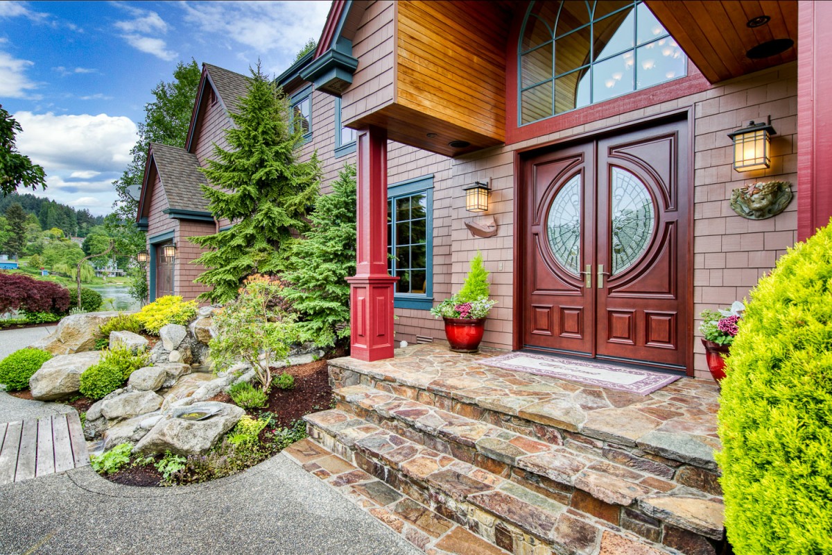 Winding down the driveway through the security gate, you immediately feel peaceful and nourished. The mature gardens on two acres have been lovingly maintained and deliver joy during every season.  With the many different specimen trees-colors and textures add to the complexity of the landscaping. The little greenhouse overwinters plants and is the site of seed starts in the spring, but it is warm and inviting any time of the year. The softly flowing waters of the waterfall spill under a walkway and into a pond surrounded by colorful vegetation. The gardens were featured in the West Sound Home and Garden magazine.